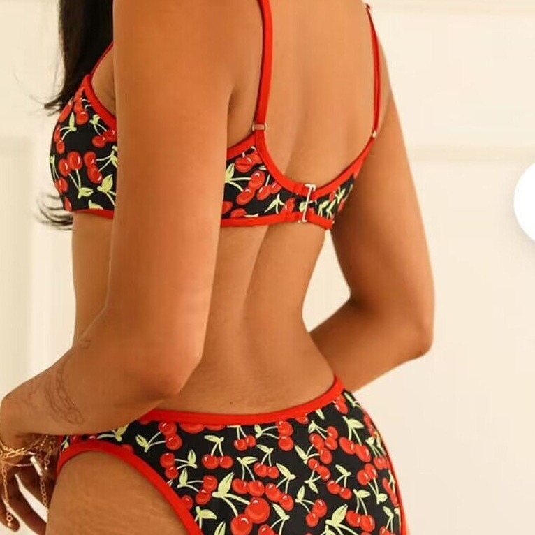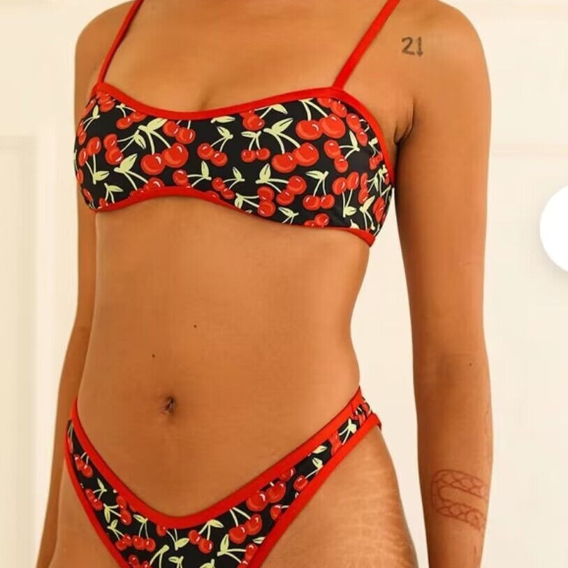 New Cherry Print Tube Top Bikini Swimsuit For Women
